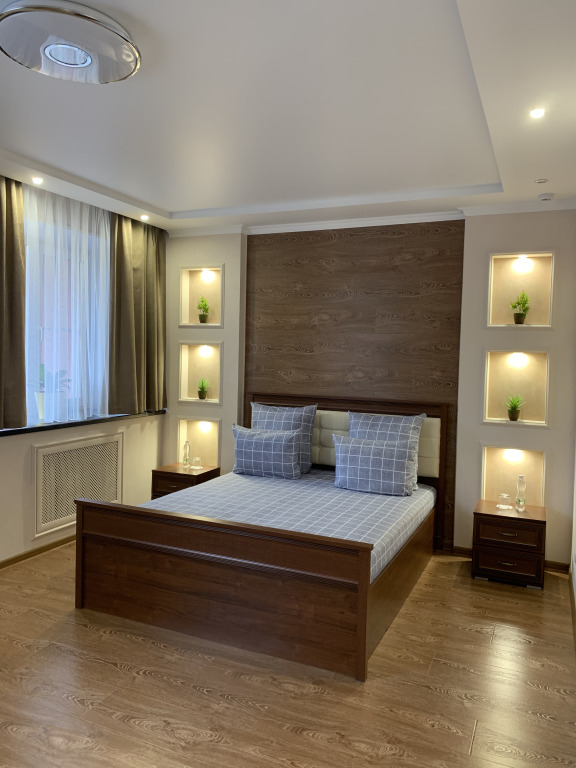 - Мебель: кровать двуспальная, прикроватные тумбочки, стол, стулья, шкаф